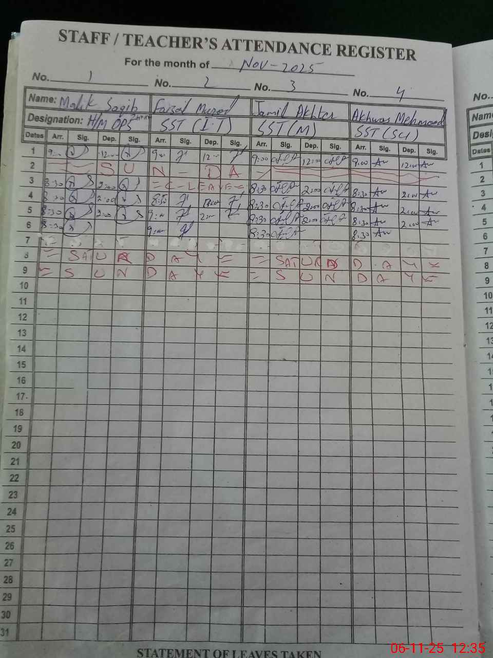 | CNIC | Full Name | Designation | R/C | Absence During Last Calender Month |