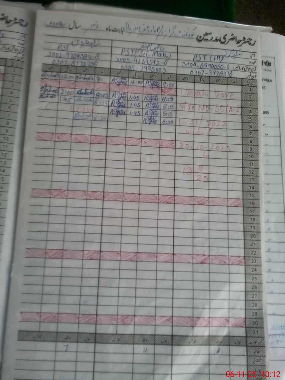 | CNIC | Full Name | Designation | R/C | Absence During Last Calender Month |