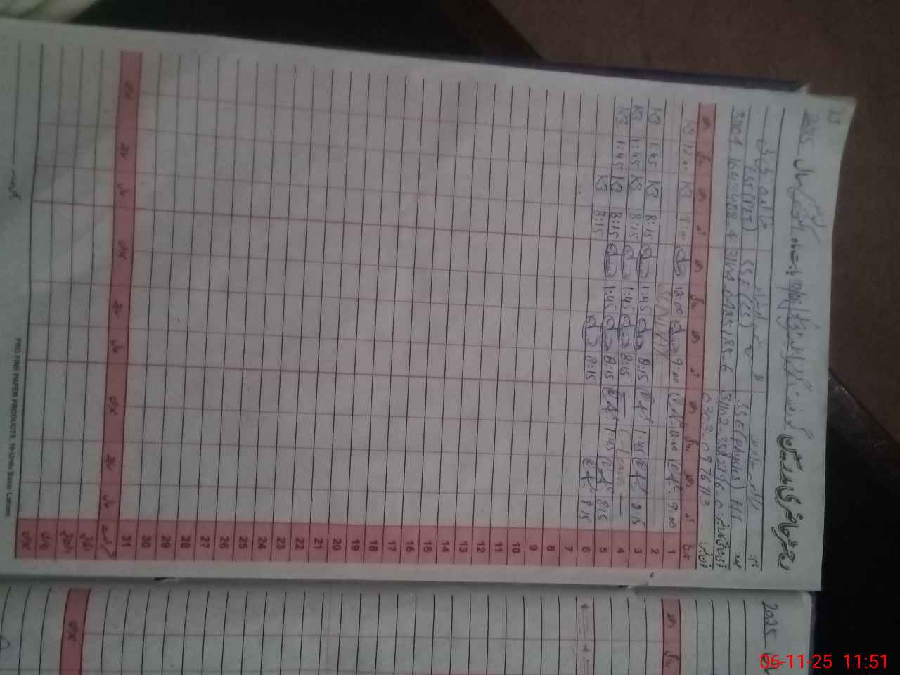 | CNIC | Full Name | Designation | R/C | Absence During Last Calender Month |