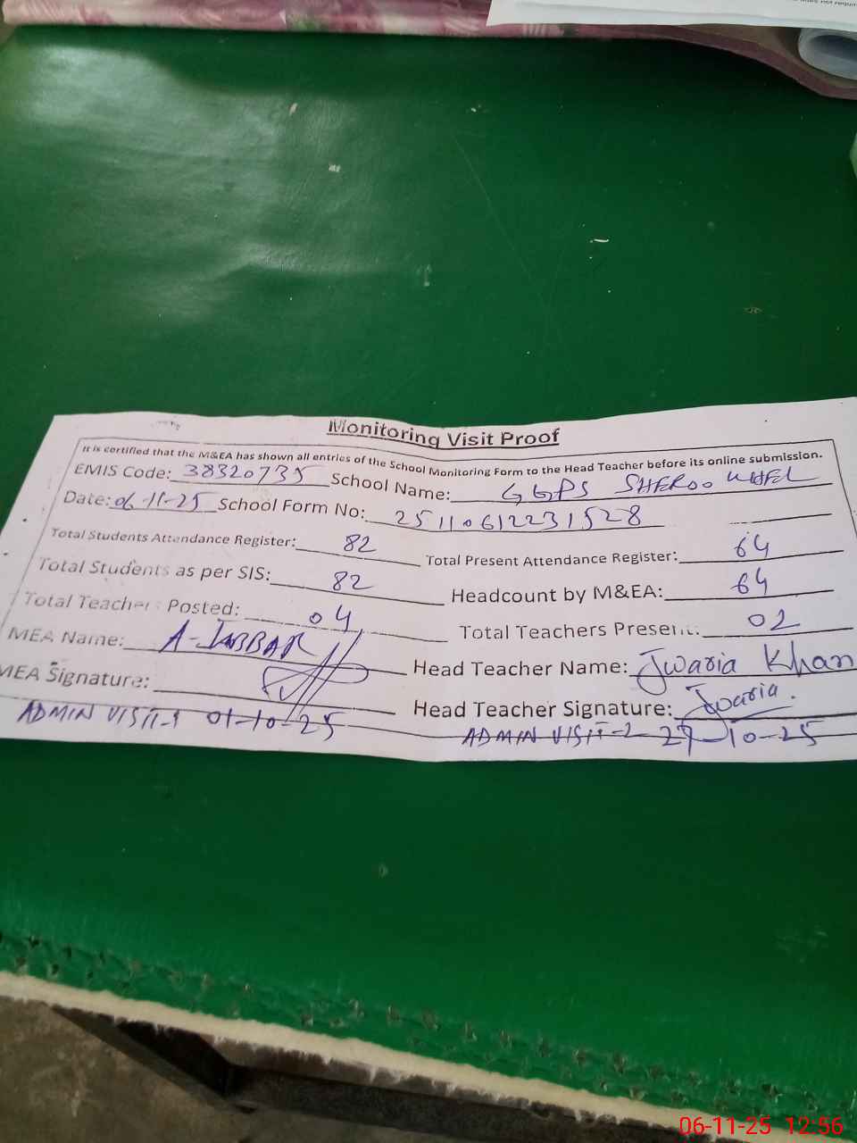 | EMIS Code: 38320735 | Name of School: GGPS SHEROO KHEL WALA | |||