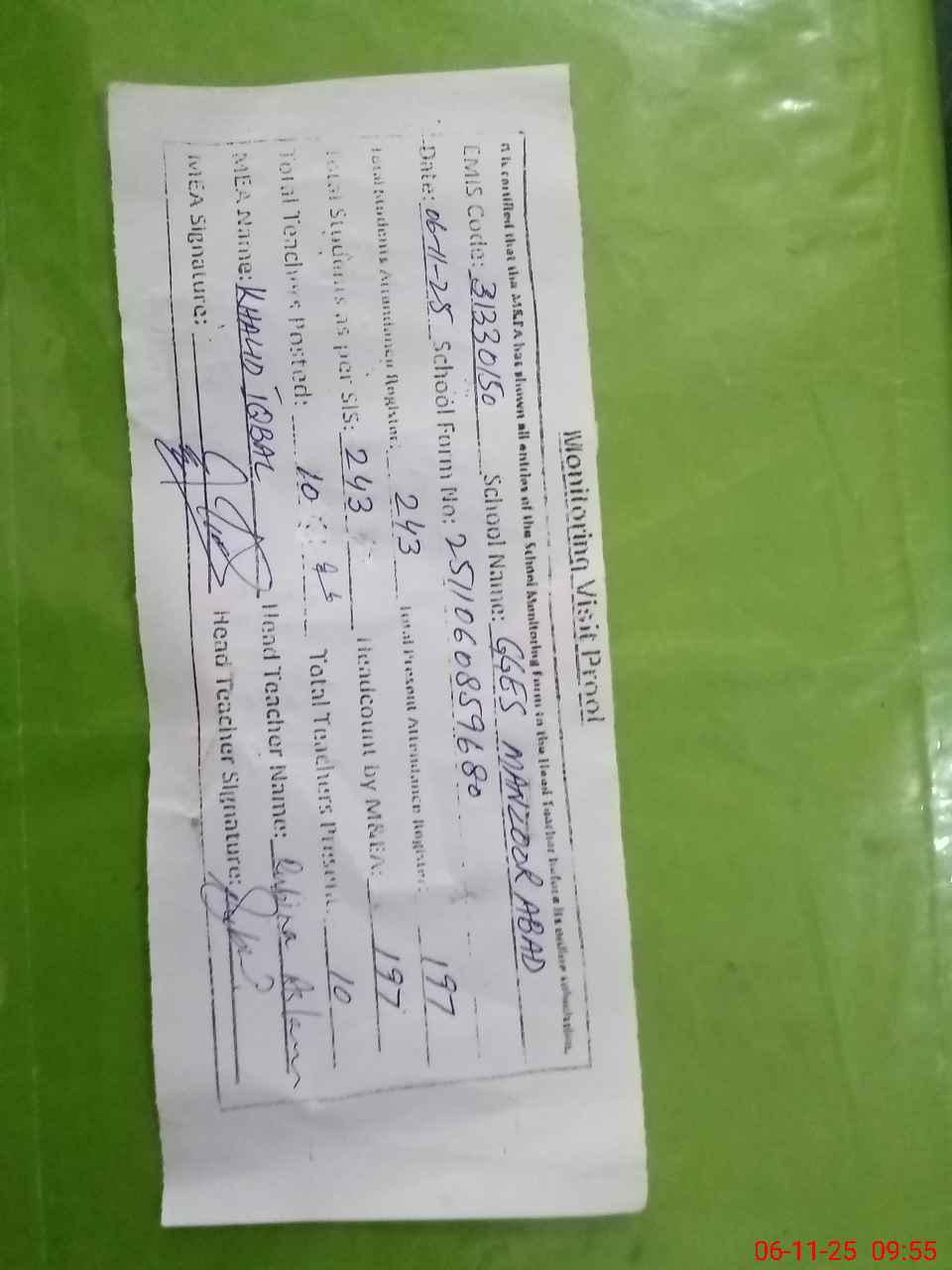 | EMIS Code: 31330150 | Name of School: GGES MANZOOR ABAD | |||