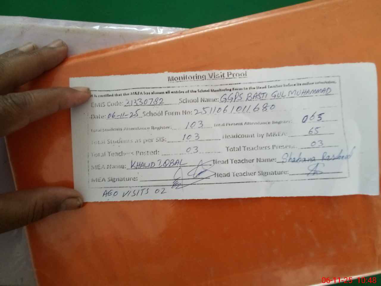 | EMIS Code: 31330782 | Name of School: GGPS BASTI GULL MUHAMMAD | |||