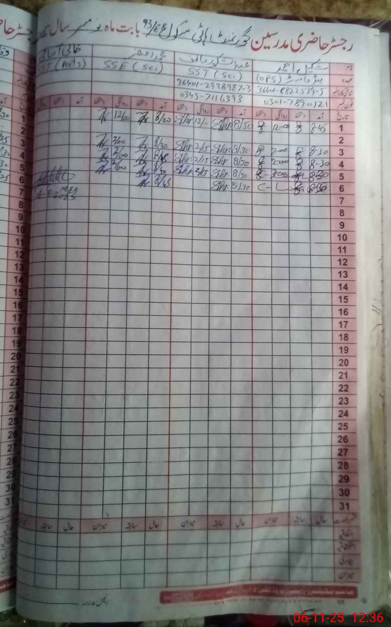 | Name: SH**** AH**** Designation: (School Headmaster's/Headmistress's) HM Phone/Cell Number: 03**** |