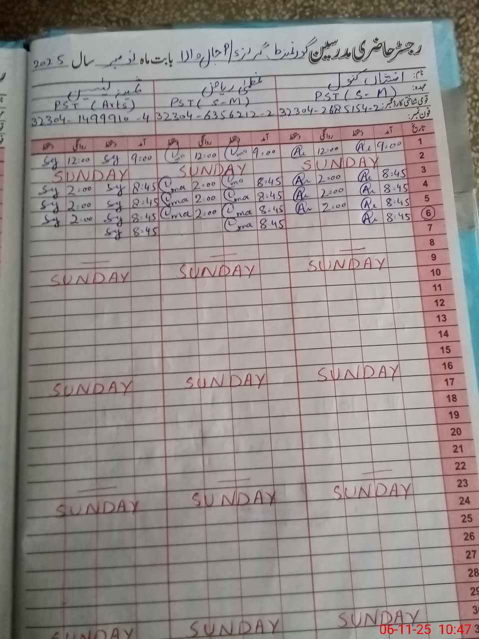 | Name: UZ**** RI**** Designation: (School Headmaster's/Headmistress's) PST Phone/Cell Number: 03**** |