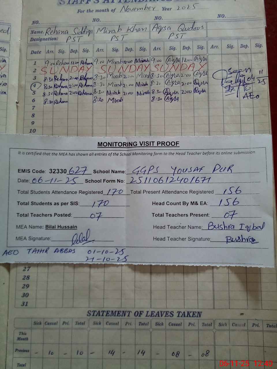 | EMIS Code: 32330627 | Name of School: GGPS YOUSUF PUR | |||