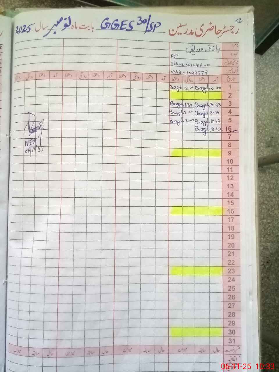 | Name: SA**** Tu**** Designation: (School Headmaster's/Headmistress's) SST Phone/Cell Number: 03**** |