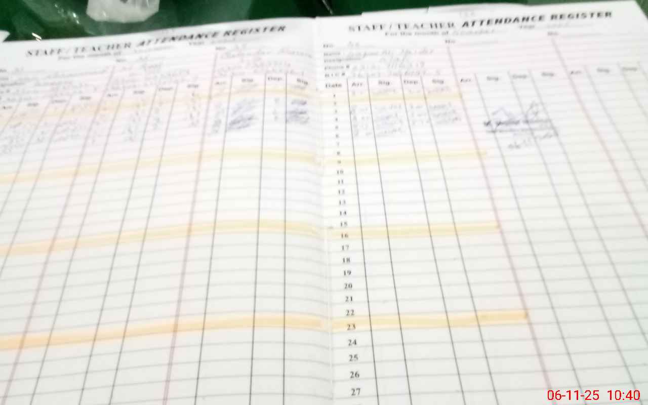 | CNIC | Full Name | Designation | R/C | Absence During Last Calender Month |