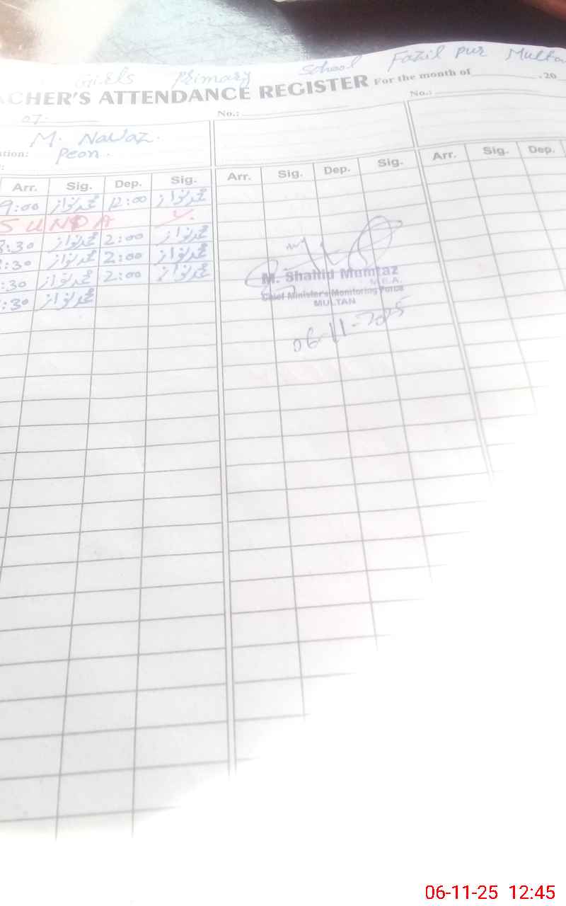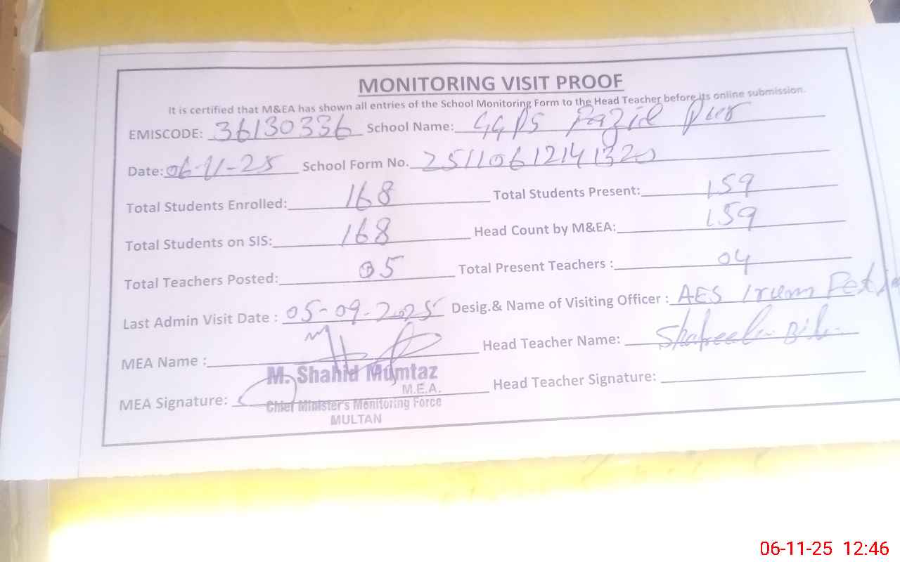 | EMIS Code: 36130336 | Name of School: GGPS FAZIL PUR MULTAN | |||