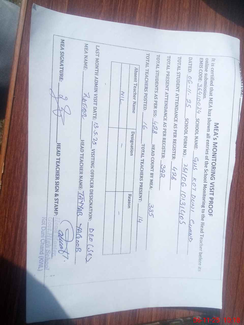 | EMIS Code: 36410024 | Name of School: GHS KOT DUNI CHAND, ABDUL HAKIM | |||