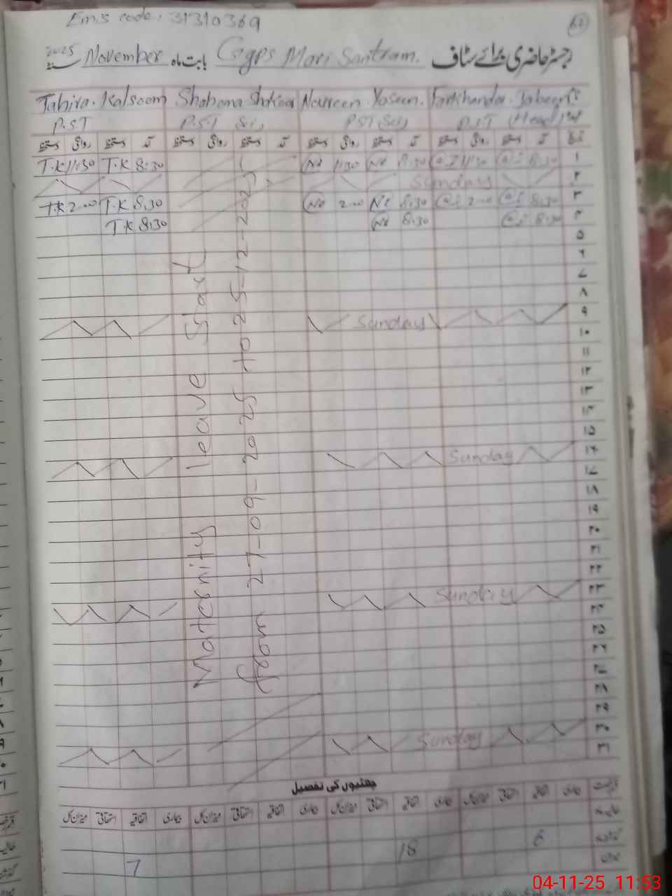 | Leave | Duty | Absent | Maternity | Medical | Ex- Pak |