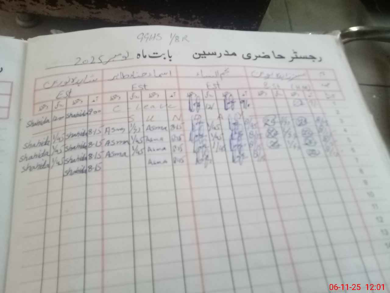 | CNIC | Full Name | Designation | R/C | Absence During Last Calender Month |