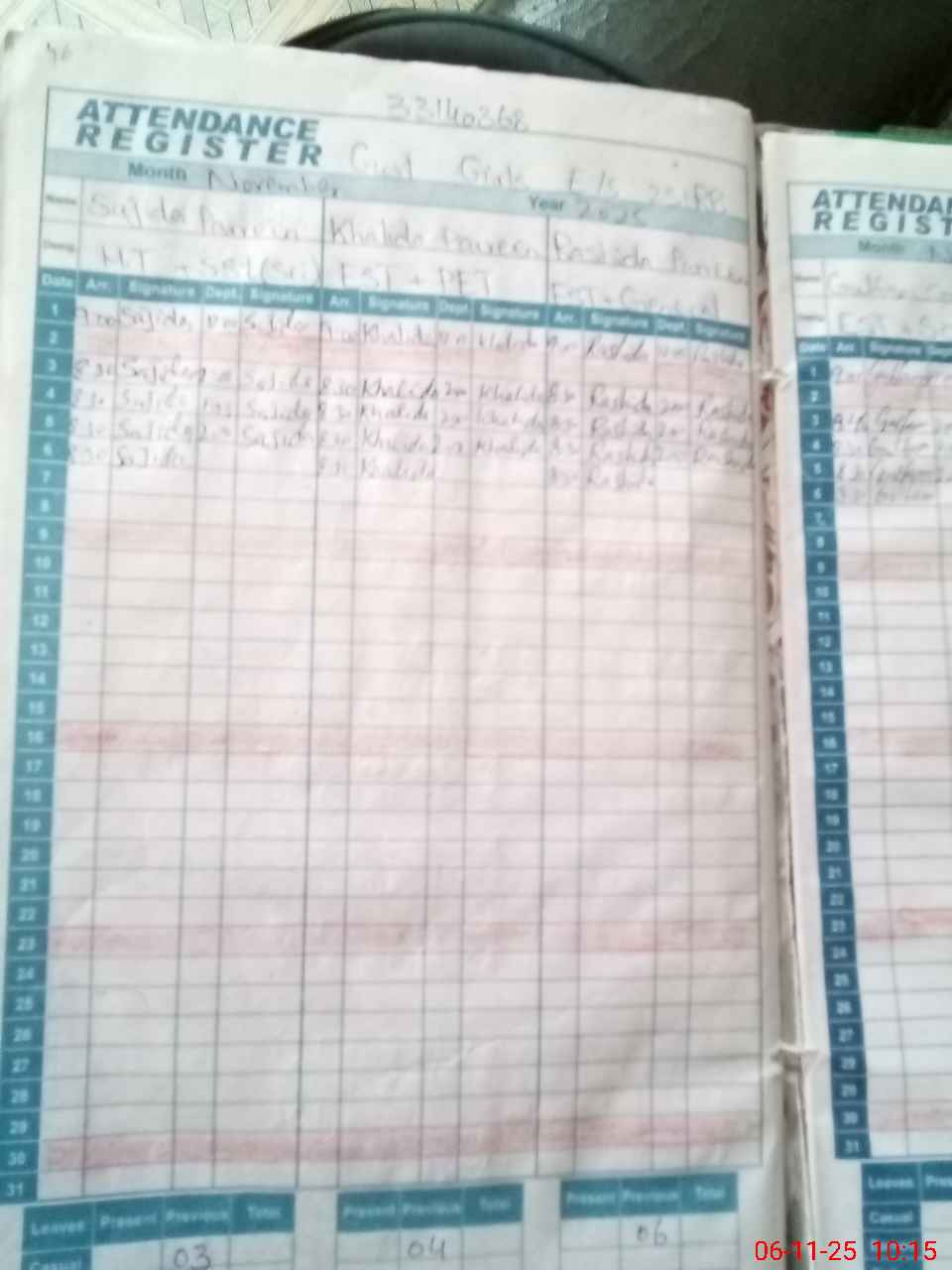 | Monitoring Date: 06-11-2025 | Start Time: 06-11-2025 09:29 AM | End Time: 06-11-2025 10:15 AM | Name of MEA: NA**** AN**** | |
