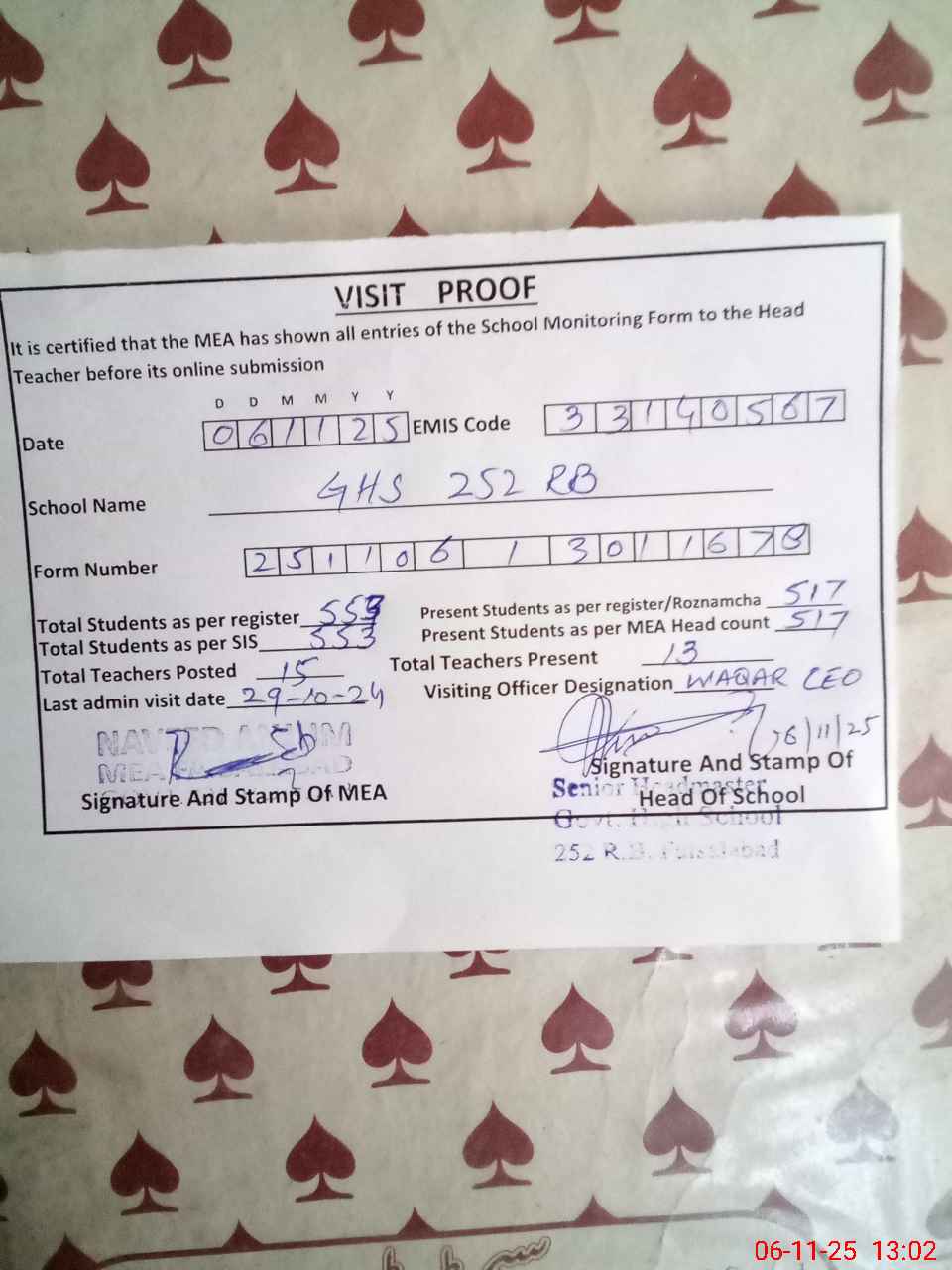 | EMIS Code: 33140567 | Name of School: GHS CHAK 252 RB FSD | |||
