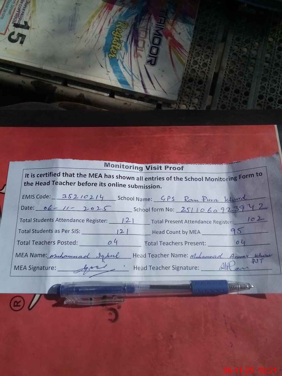 | EMIS Code: 35210214 | Name of School: GPS RAM PURA KHURD | |||