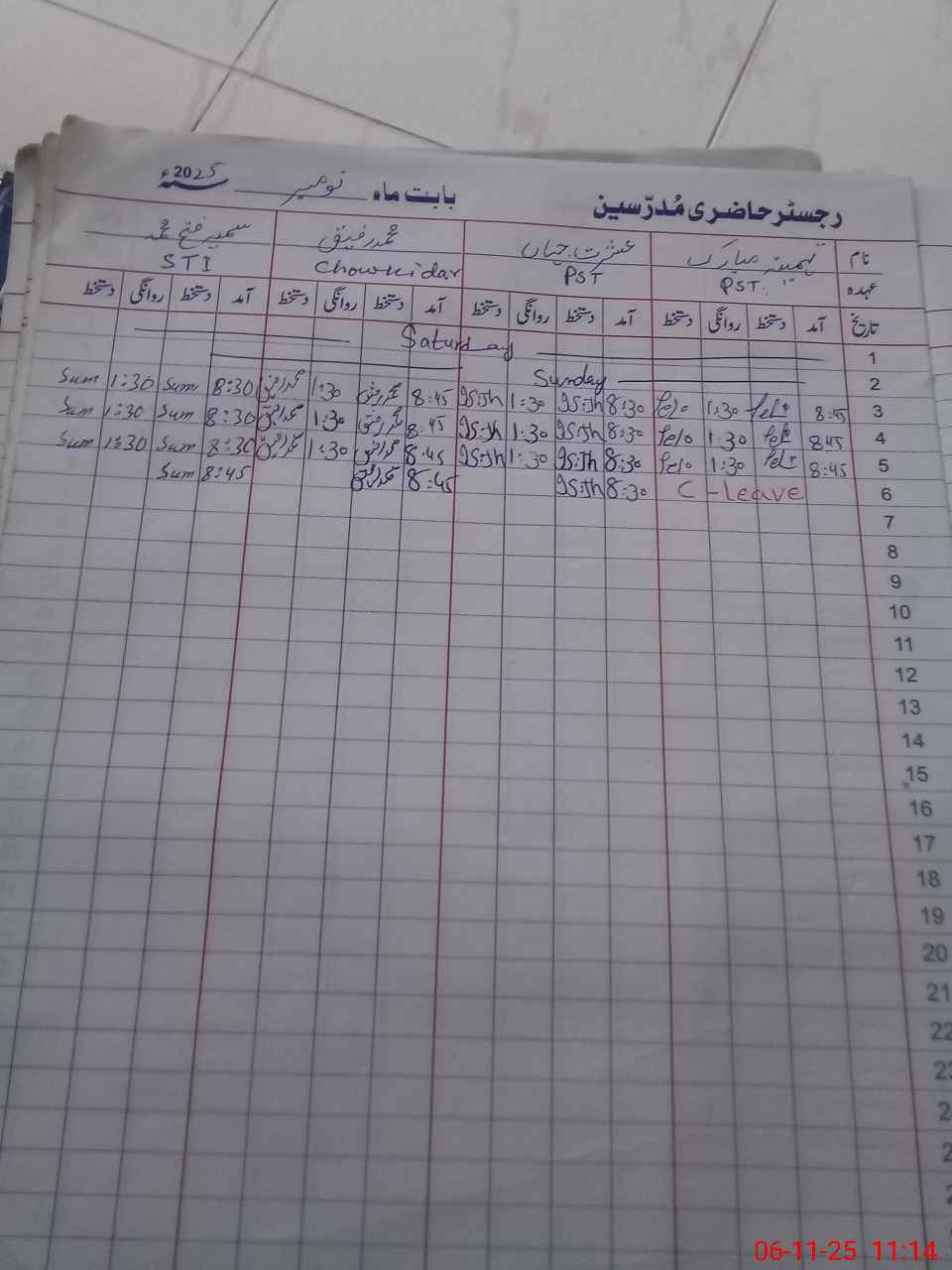 | CNIC | Full Name | Designation | R/C | Absence During Last Calender Month |