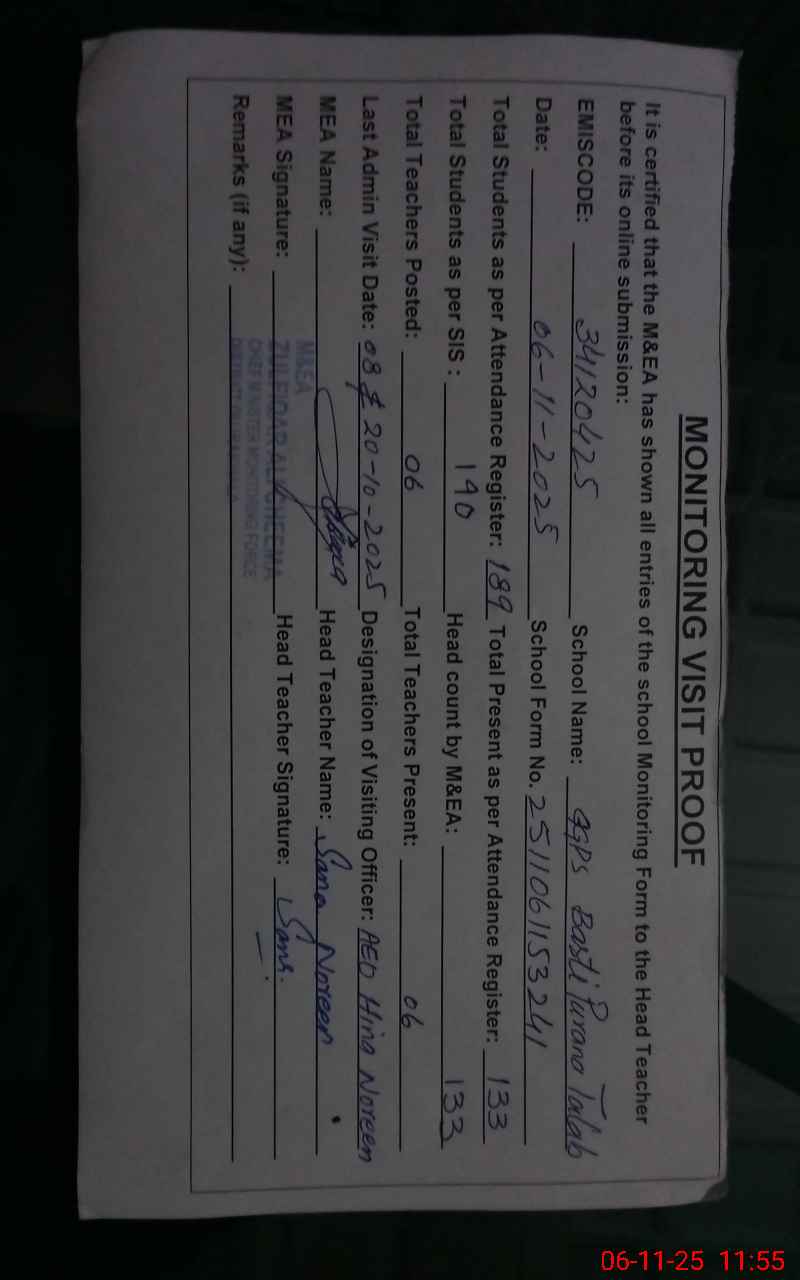 | EMIS Code: 34120425 | Name of School: GGPS BASTI PURANA TALAB | |||