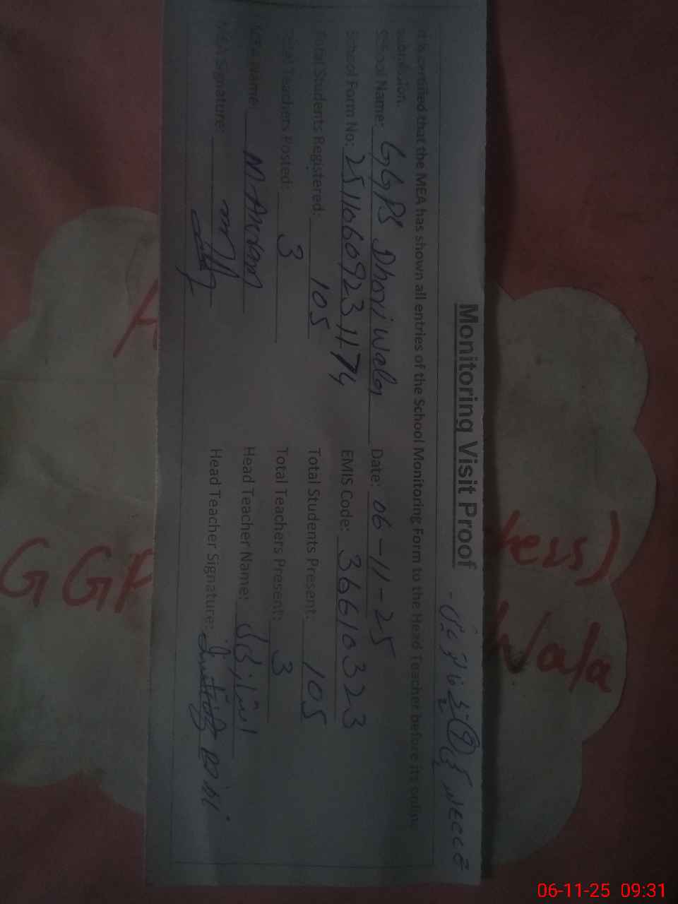 | EMIS Code: 36610323 | Name of School: GGPS DHORI WALA | |||