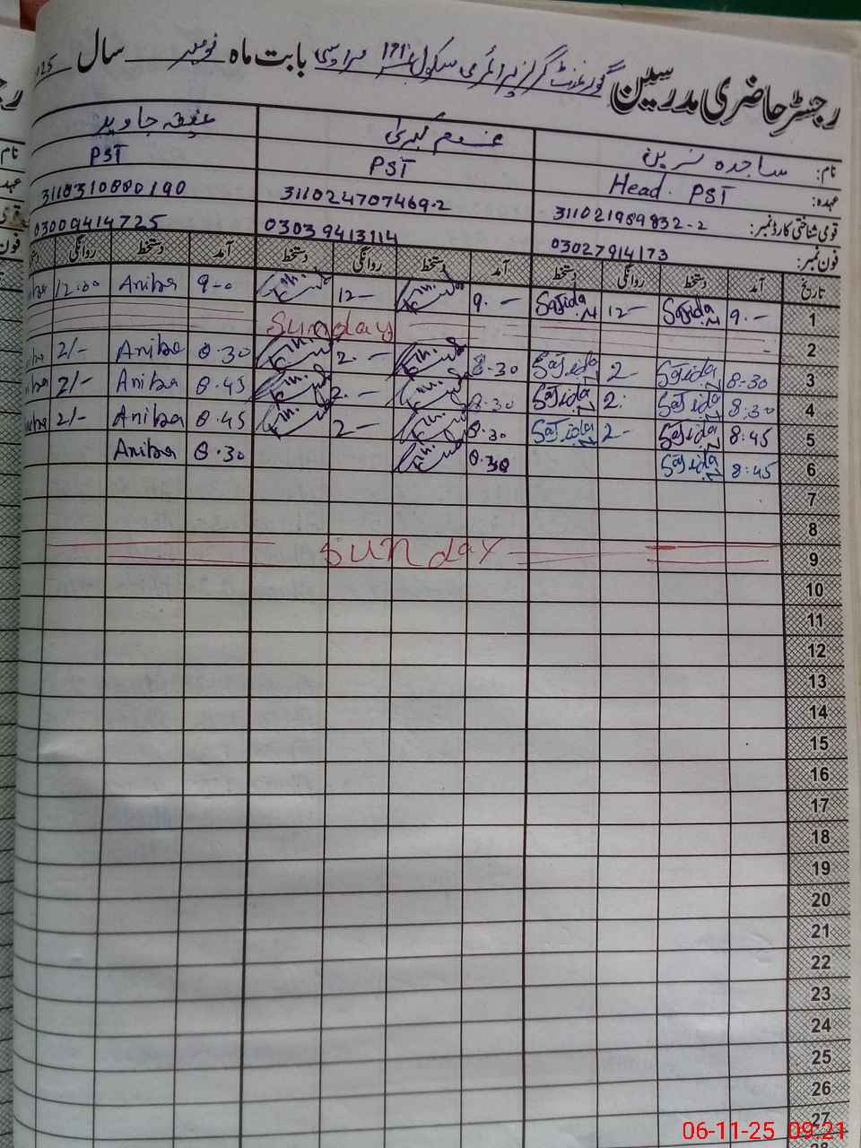 | Name: SA**** NA**** Designation: (School Headmaster's/Headmistress's) PST Phone/Cell Number: 03**** |