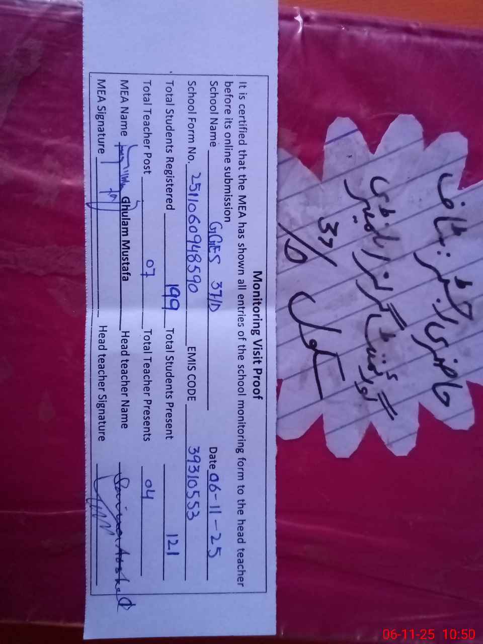 | EMIS Code: 39310553 | Name of School: GGES CHAK NO. 37/D | |||