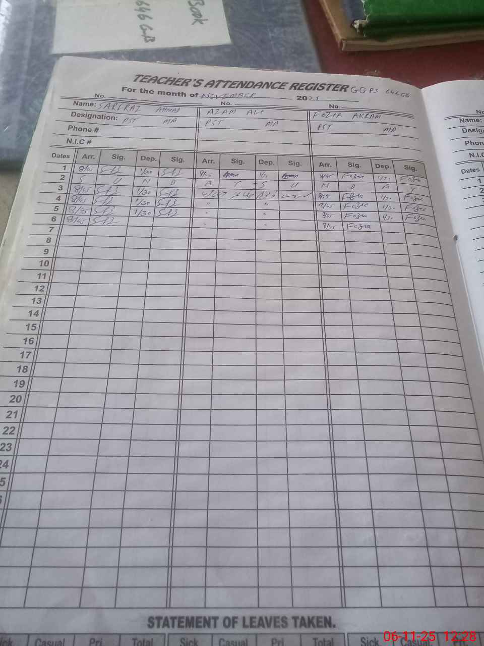 | Name: FO**** AK**** Designation: (School Headmaster's/Headmistress's) PST Phone/Cell Number: 03**** |