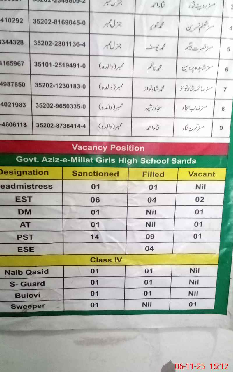 | EMIS Code: 35220137 | Name of School: GGHS AZIZ-I-MILLAT SANDA (Newly Upgraded) | |||