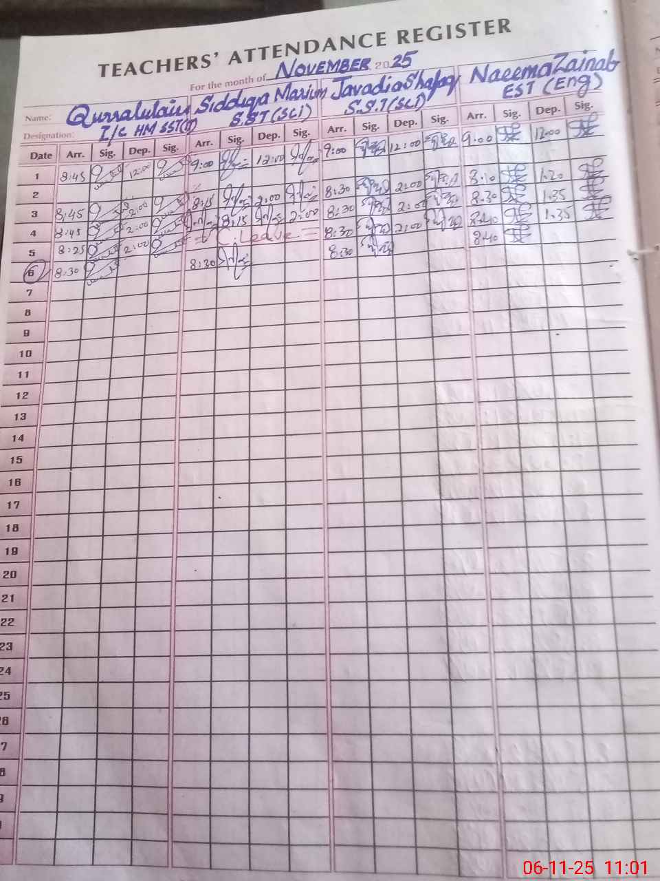 | Name: Qu**** UlAi**** Designation: (School Headmaster's/Headmistress's) I/C HEADMISTRESS Phone/Cell Number: 03**** |