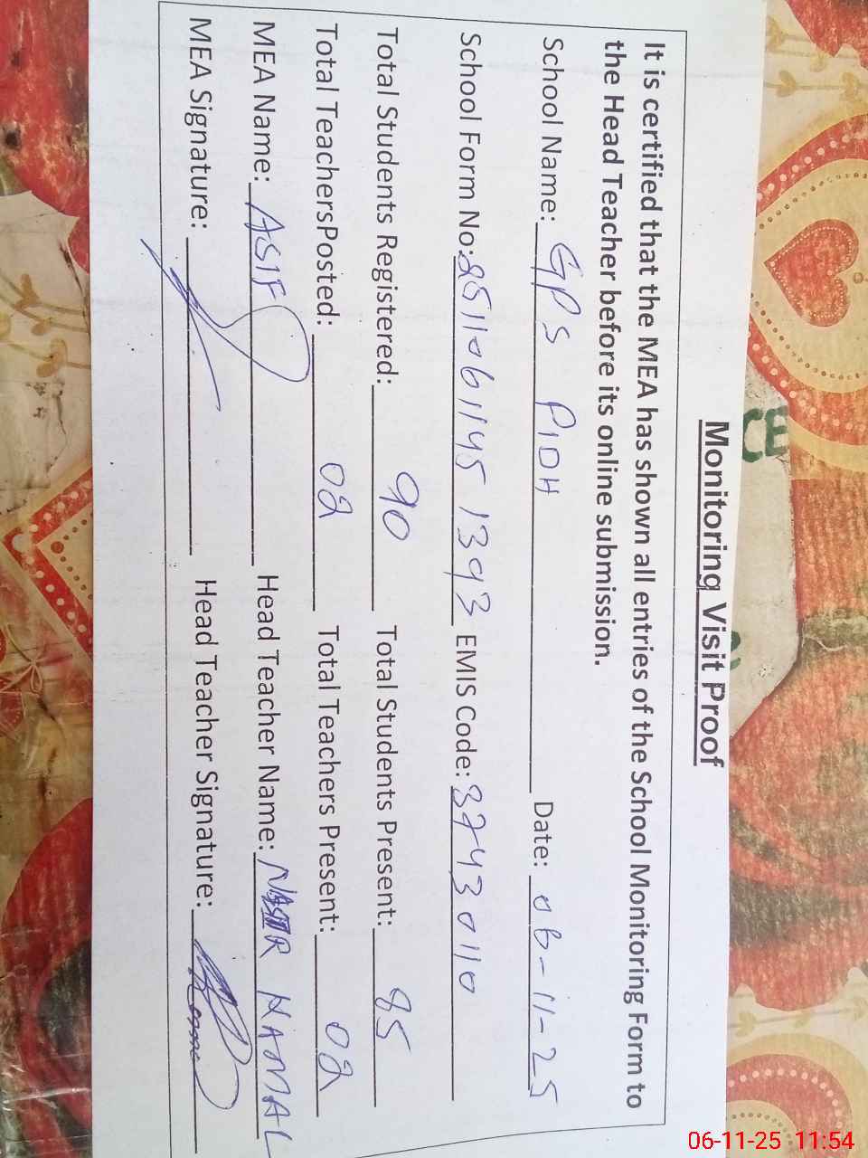 | EMIS Code: 37430110 | Name of School: GPS PIDH | |||