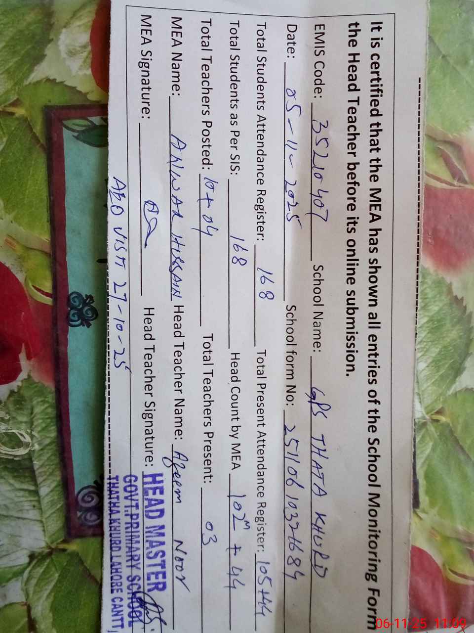 | EMIS Code: 35210407 | Name of School: GPS THATA KHURD | |||