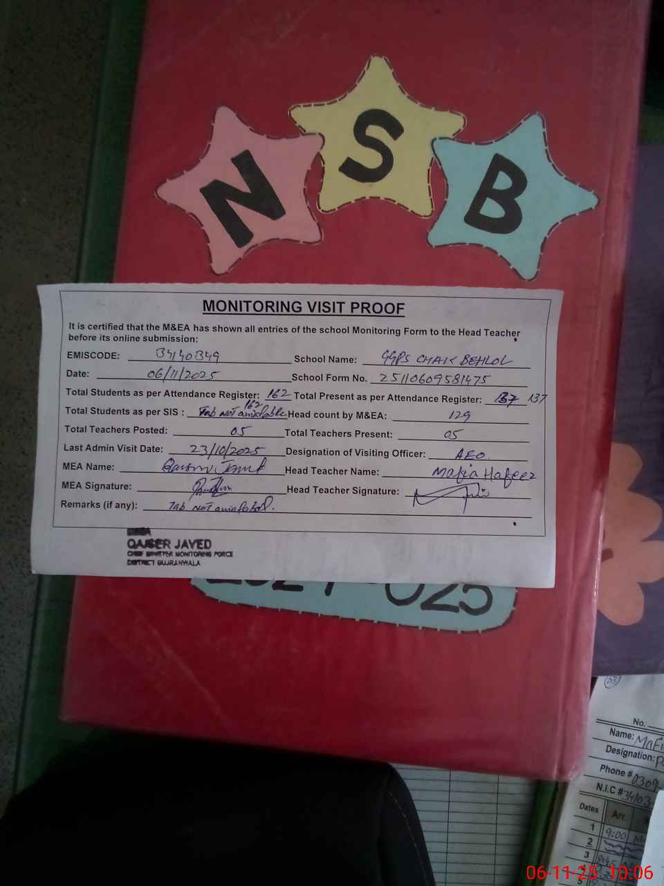 | EMIS Code: 34140349 | Name of School: GGPS CHAK BEHLOL | |||