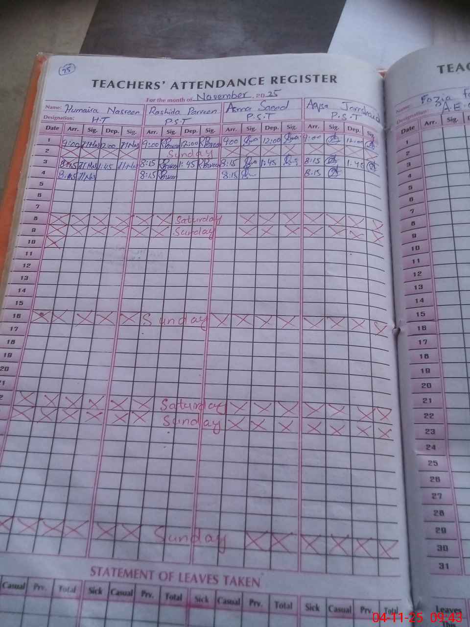 | 31**** | Aq**** Ja**** | ESE Science/Maths | Regular | 0 | 0 | 0 | 0 | 0 | 0 | 0 | 0 | 0 | Absent (Un-Authorized) |