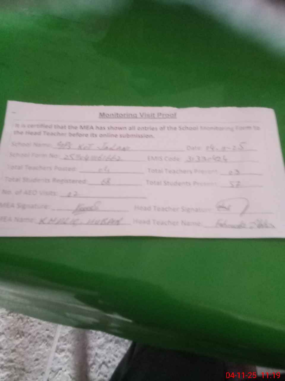 | EMIS Code: 31330424 | Name of School: GPS KOT JAILANI | |||