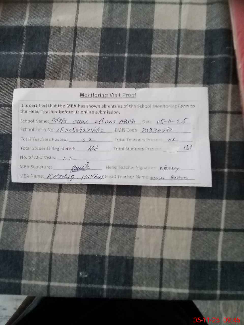 | EMIS Code: 31330792 | Name of School: GGPS CHAK ASLAM ABAD | |||