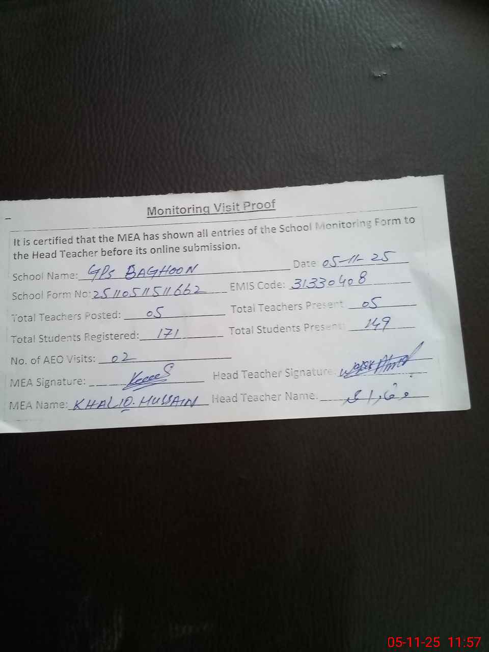 | EMIS Code: 31330408 | Name of School: GPS BAGHOON | |||