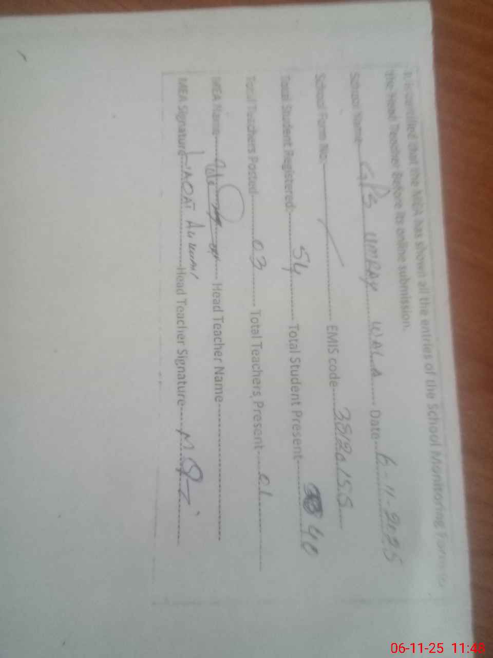 | EMIS Code: 38120158 | Name of School: GPS UMRAY WALA | |||
