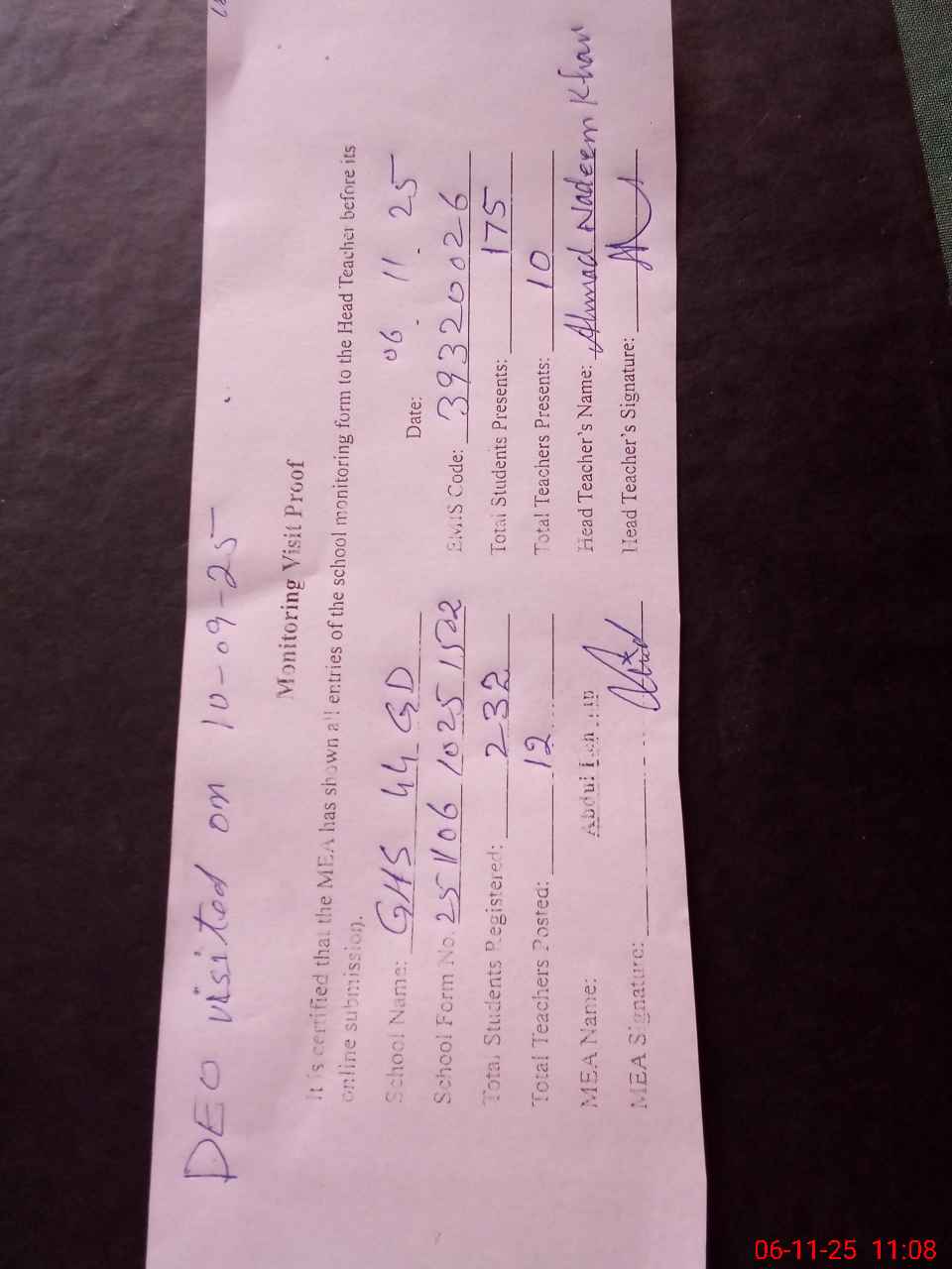 | EMIS Code: 39320026 | Name of School: GHS 44/G.D | |||