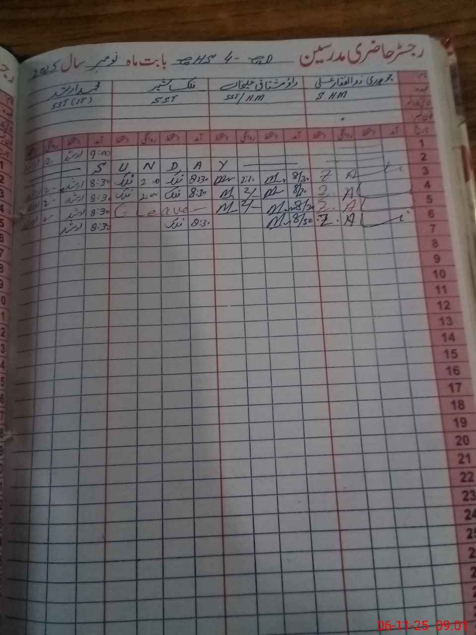 | CNIC | Full Name | Designation | R/C | Absence During Last Calender Month |