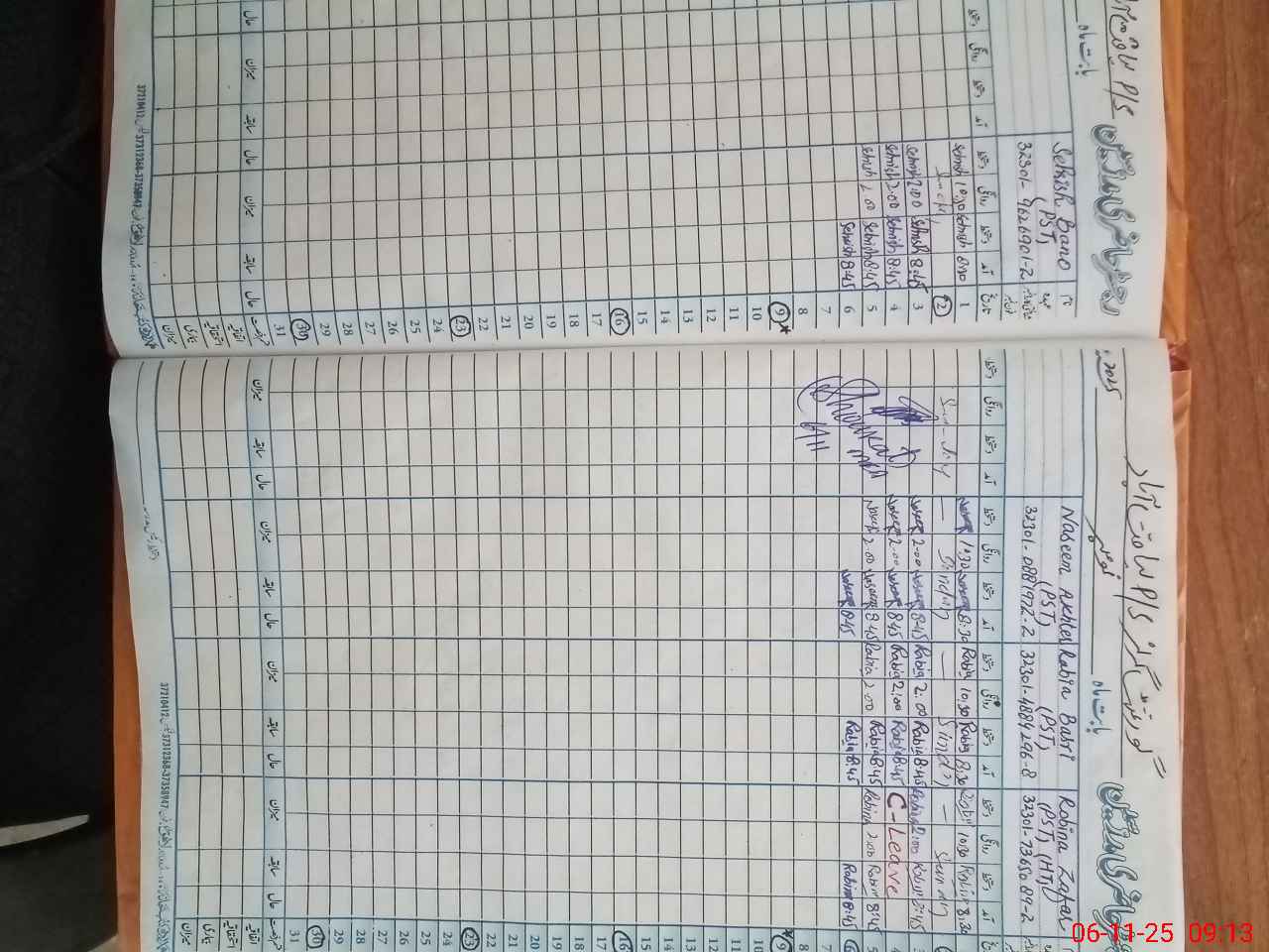| CNIC | Full Name | Designation | R/C | Absence During Last Calender Month |