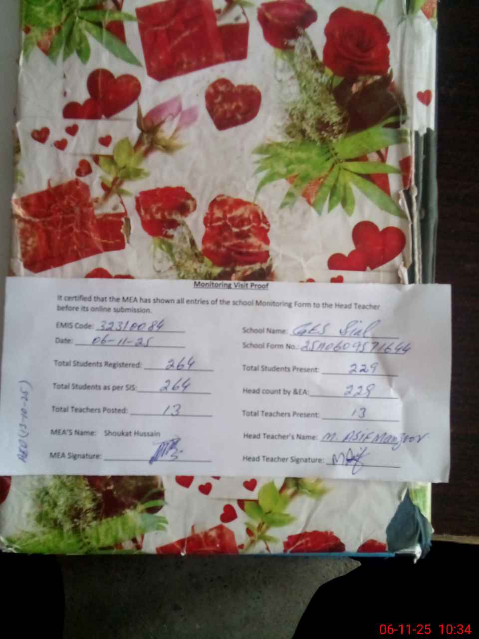 | Attendance Register | Head Teacher | MEA with School | Visit Proof |