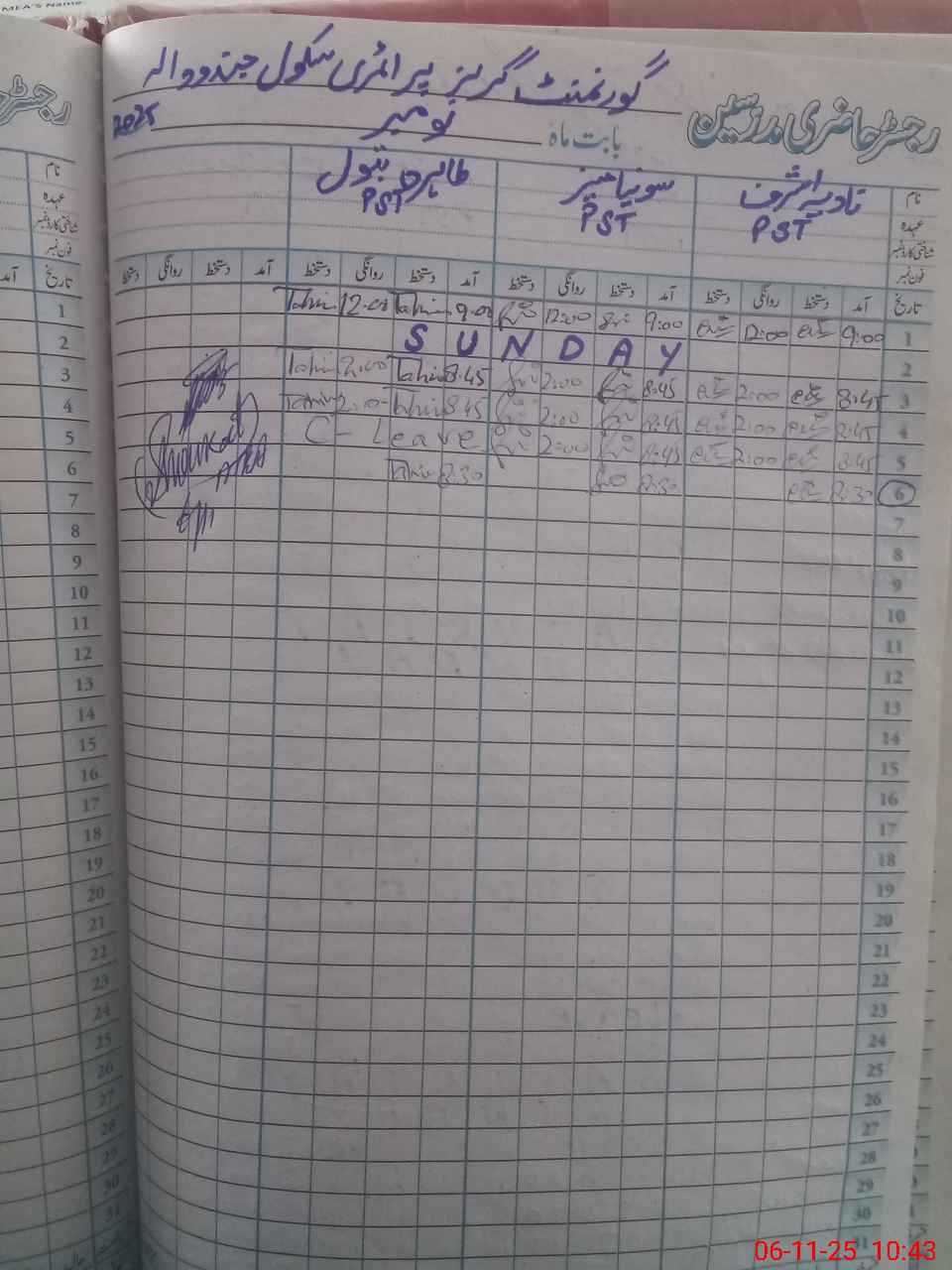 | Name: NA**** AS**** Designation: (School Headmaster's/Headmistress's) PST Phone/Cell Number: 03**** |