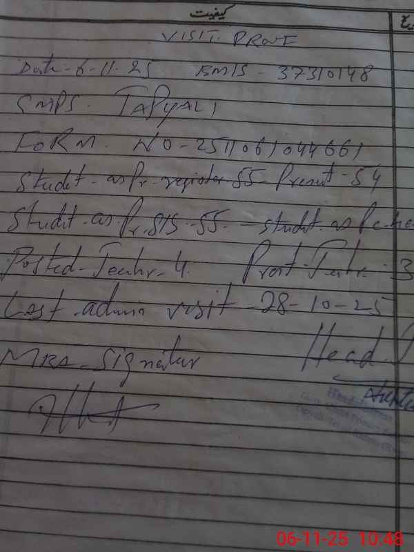 | Certified that this School was Inspected by the Undersigned MEA/DMO Today and the Information Stated Above is as Per Record. | |||||