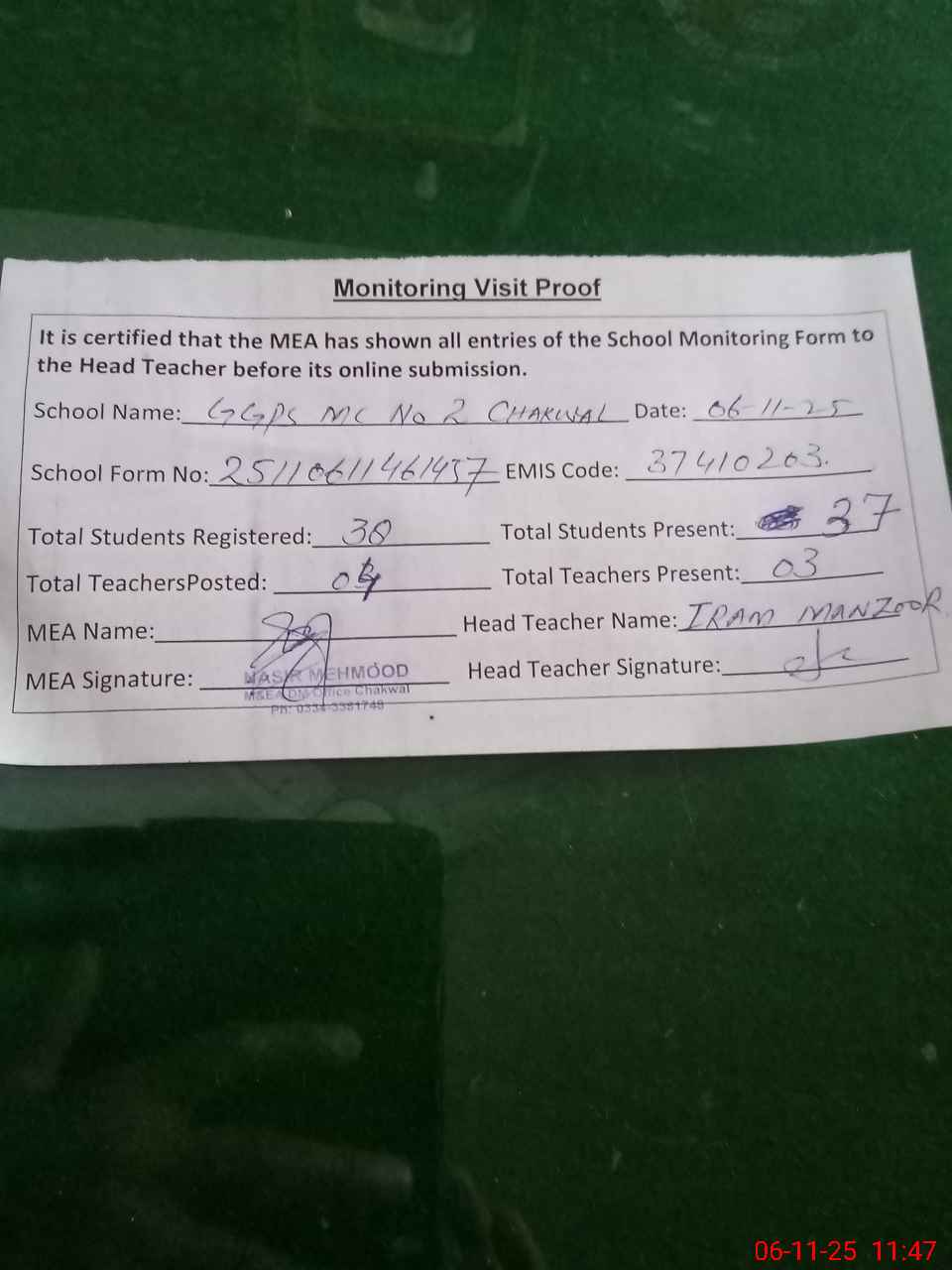 | EMIS Code: 37410203 | Name of School: GMPS MC NO. 2 CHAKWAL | |||
