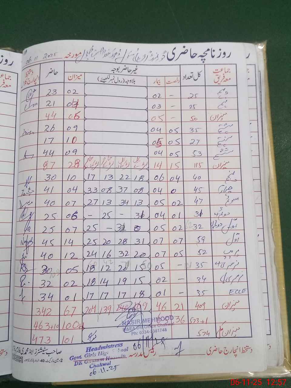 | Name: FA**** RE**** Designation: (School Headmaster's/Headmistress's) HEADMISTRESS Phone/Cell Number: 03**** |