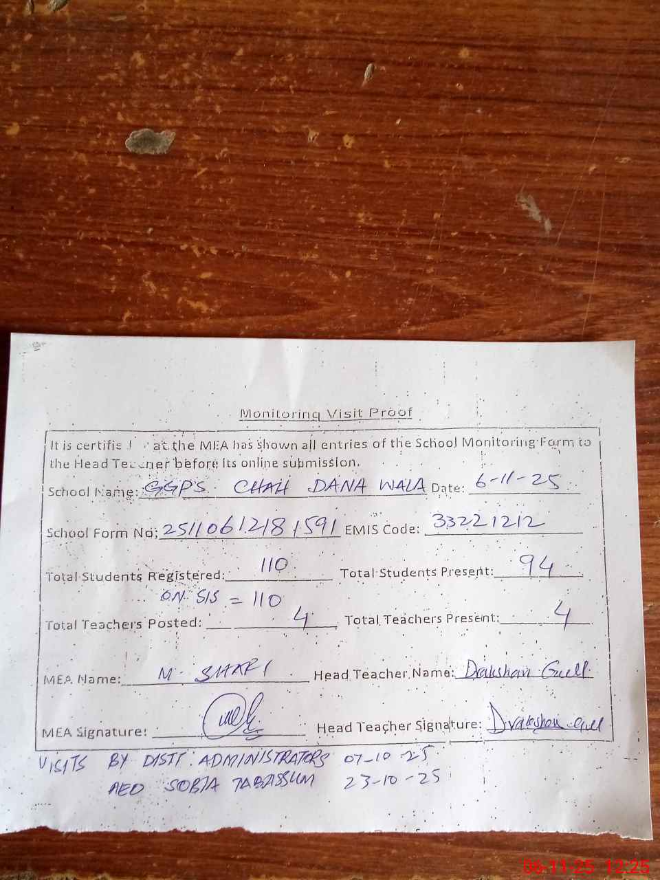 | EMIS Code: 33221212 | Name of School: GGPS CHAH DANA WALA | |||