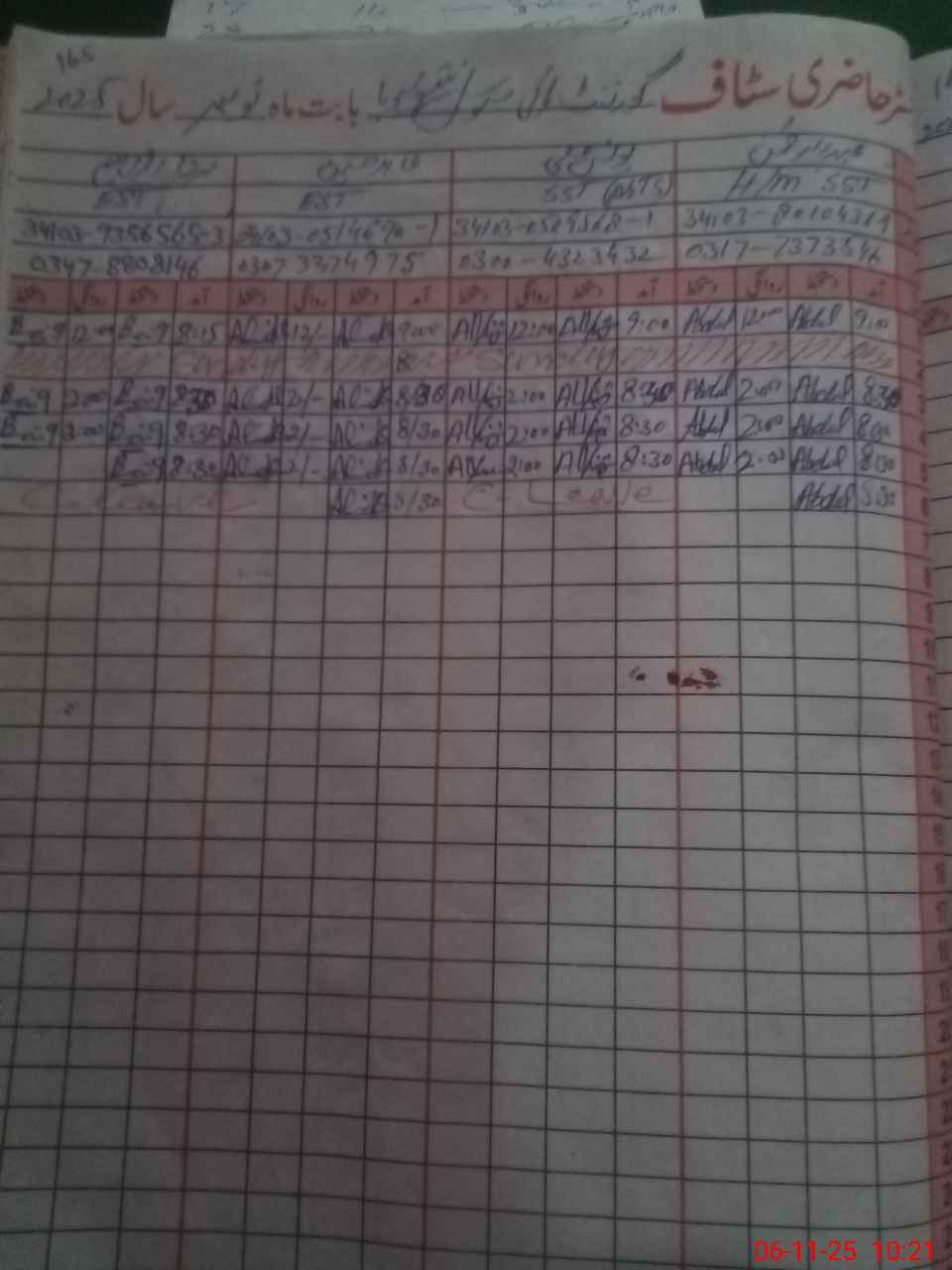| CNIC | Full Name | Designation | R/C | Absence During Last Calender Month |