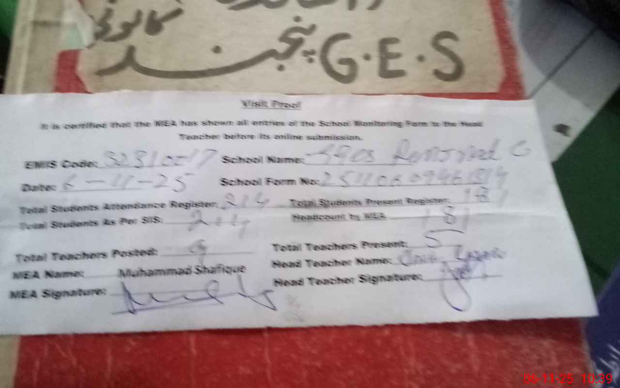 | EMIS Code: 32310017 | Name of School: GES PUNJNAD COLONY | |||