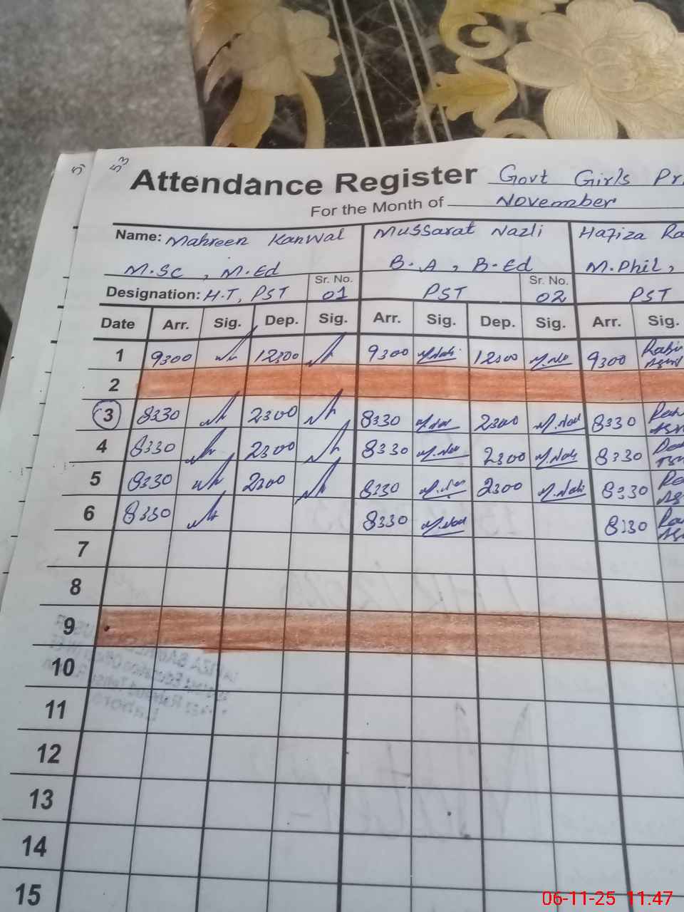 | Monitoring Date: 06-11-2025 | Start Time: 06-11-2025 10:57 AM | End Time: 06-11-2025 11:48 AM | Name of MEA: M.**** AK**** | |