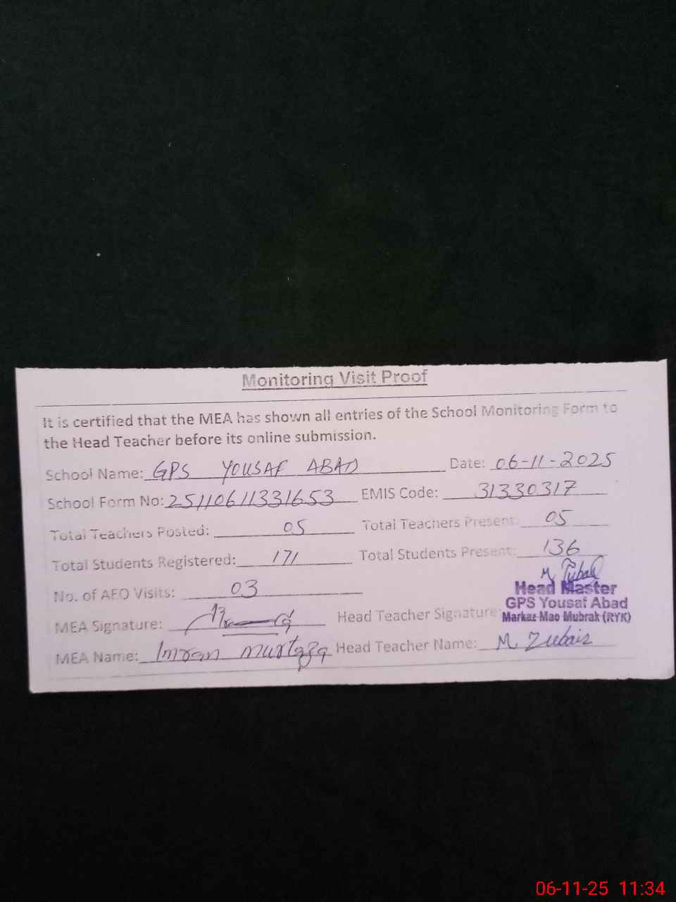 | EMIS Code: 31330317 | Name of School: GPS YOUSAF ABAD | |||