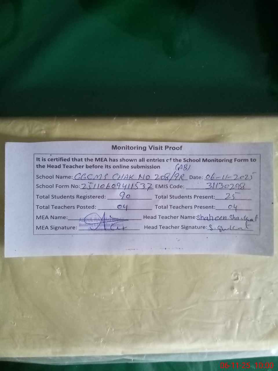 | EMIS Code: 31130298 | Name of School: GGCMS CHAK NO. 208/9-R AZAFI BASTI | |||