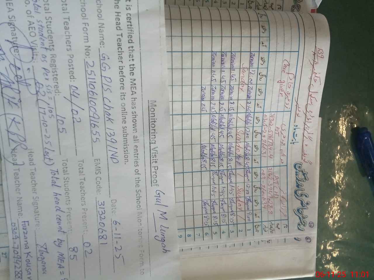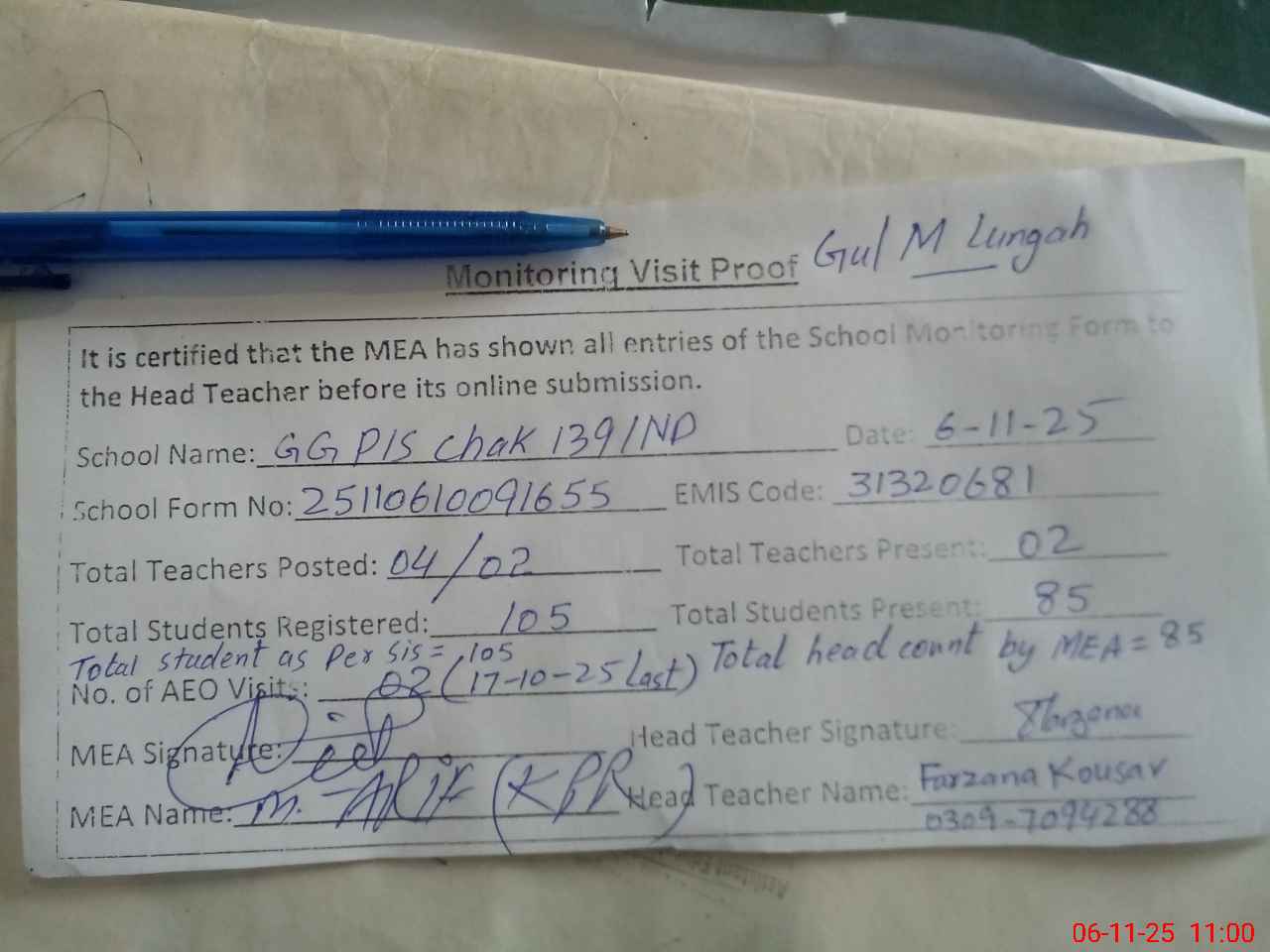 | EMIS Code: 31320681 | Name of School: GGPS CHAK 139/NP | |||