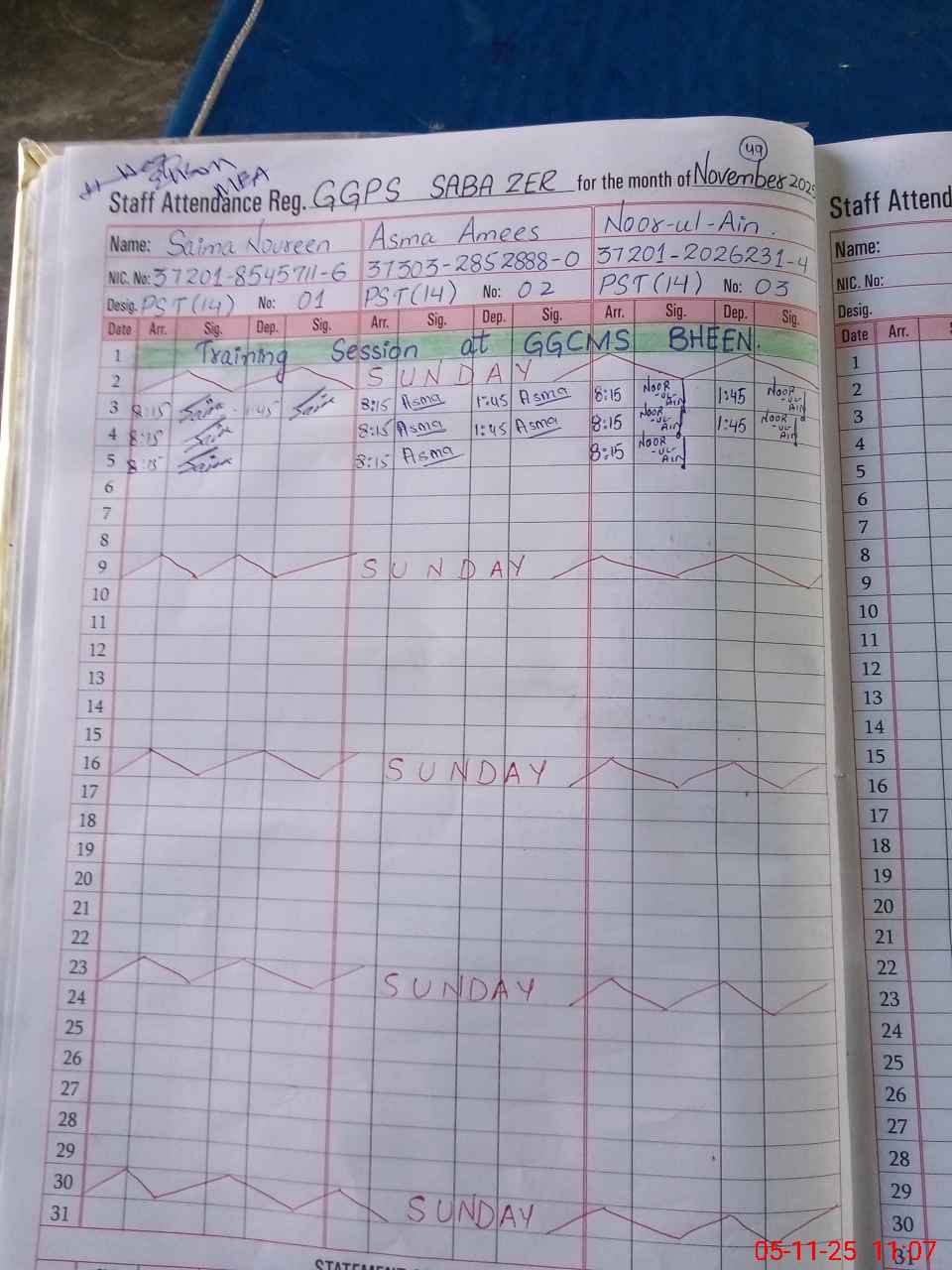 | CNIC | Full Name | Designation | R/C | Absence During Last Calender Month |